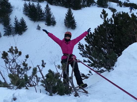 - technika poruszania się w rakach i z czekanem (wyhamowywanie obsunięć na stromym stoku)
