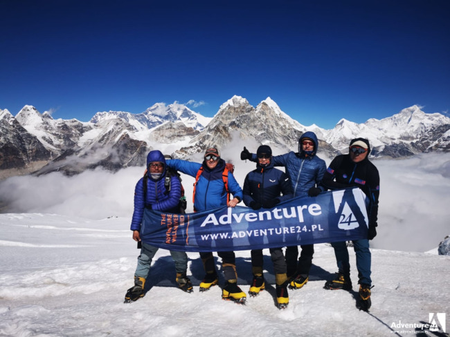 Walkę z zimnem i z wysokością wynagrodziły wspaniałe widoki ze szczytu, gdzie podziwiać można ośmiotysięczniki: Mount Everest, Lhotse, Cho Oyo, Makalu czy Kanczendzonga.